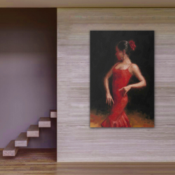 Dans Eden Kırmızı Elbiseli Kadın 2 Kanvas Tablo
