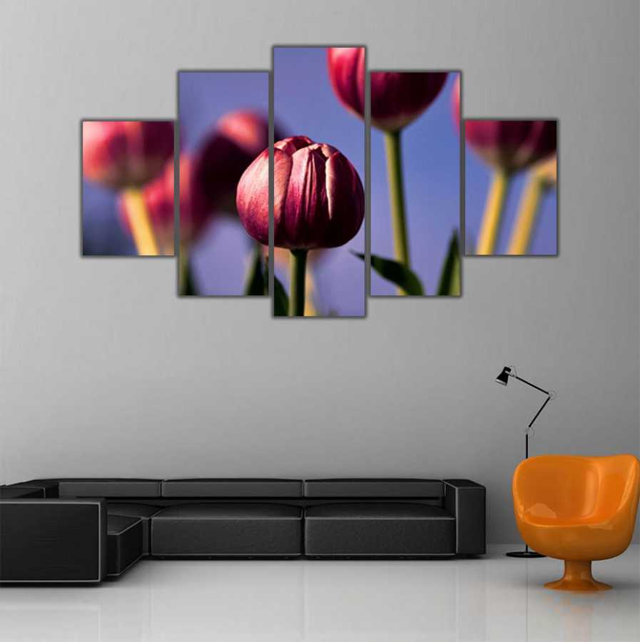 Lale Bahçesi 5 Parçalı Kanvas Tablo