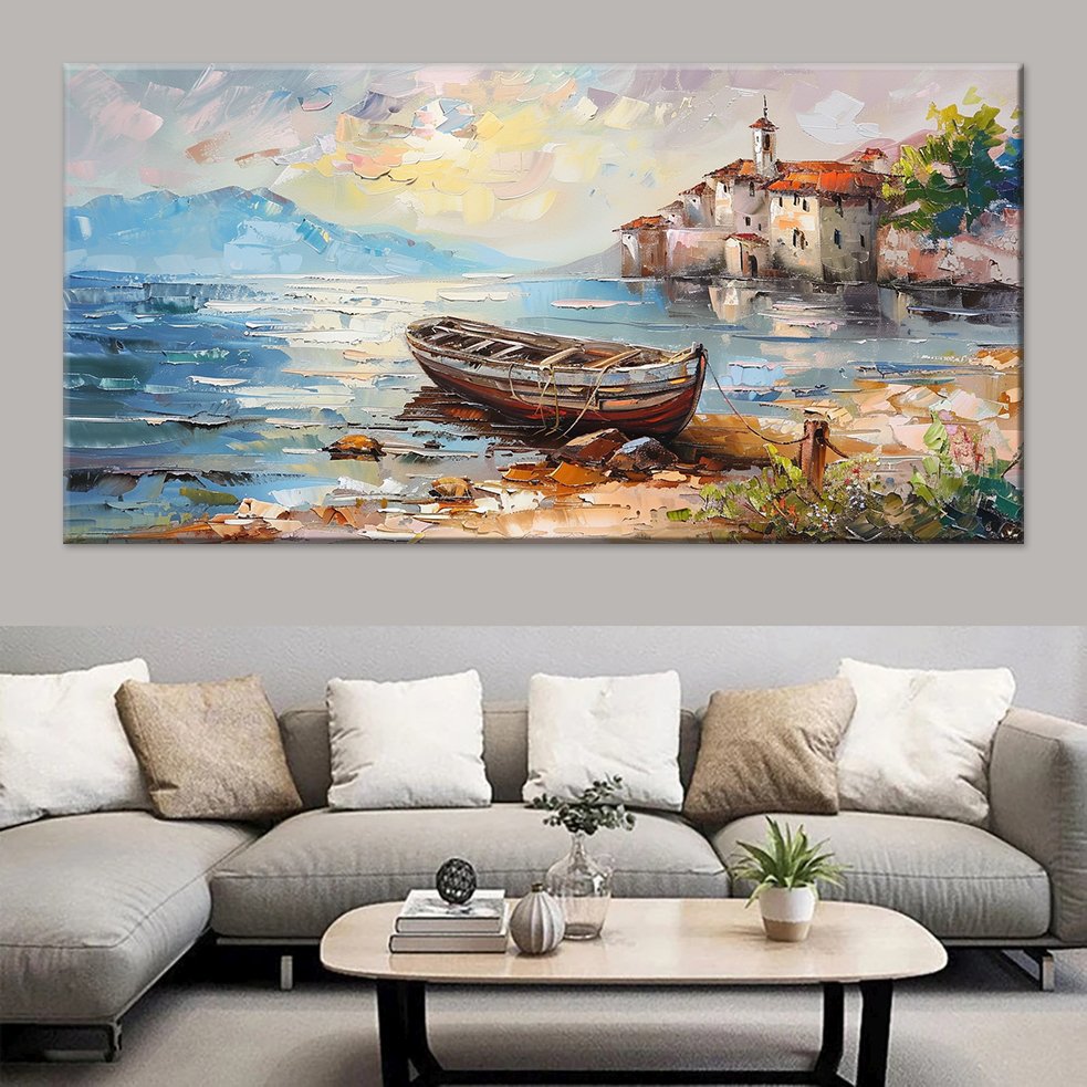 Sahil Kasabasında Deniz Kenarında Akşam Kanvas Tablo