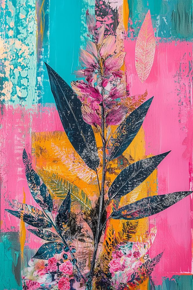 Soyut Renkler Üzerine Yapraklar Kanvas Tablo